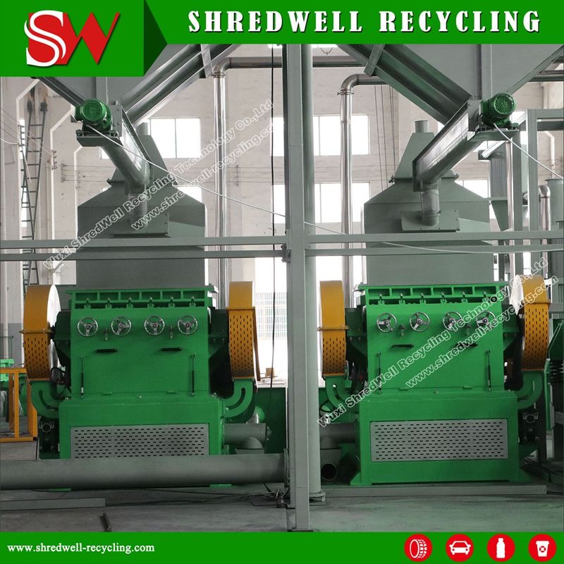 시레드웰 RG 일련 타이어 과립기는 타이어 쉬레딩 과정에서 고운 분쇄기로 고안되는 것으로 분화시킵니다, 우리의 과립화 공정 뒤에 있는 최종 생성물이 99.9% 섬유 무료 고무분말일 것입니다, 크기가 1-6mm 시경에 있을 것입니다.